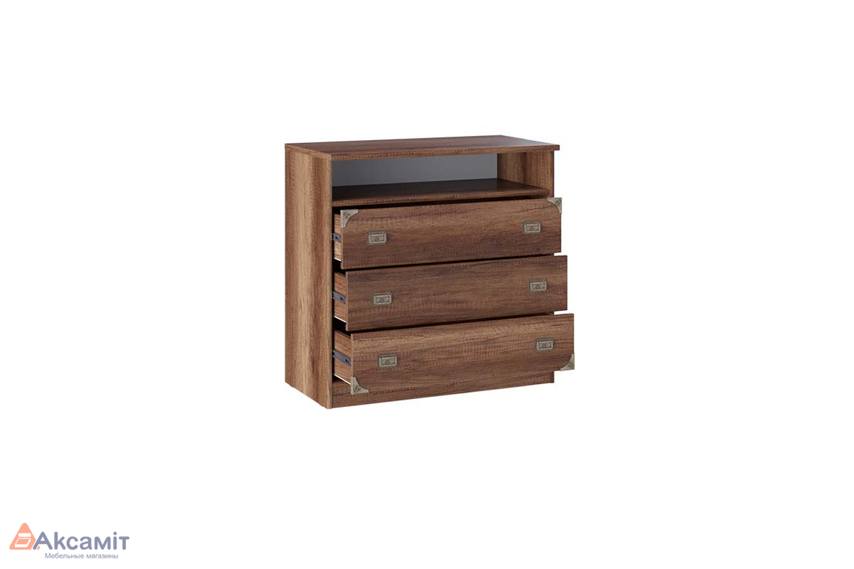 Размер комода: 80х100,5 см. Интегрированные ручки декорированы белыми вставками.