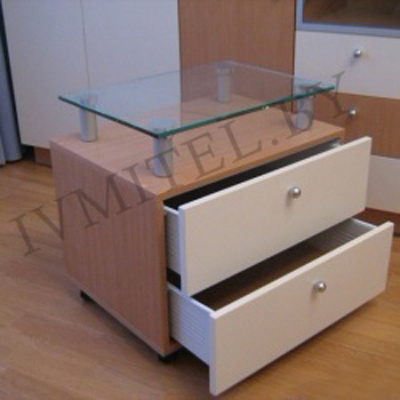 Низкий компактный комод можно разместить в любой части комнаты. Модель имеет небольшую стеклянную подставку, которую можно использовать как место под TV. Два выдвижных ящика двигаются на бесшумных направляющих.