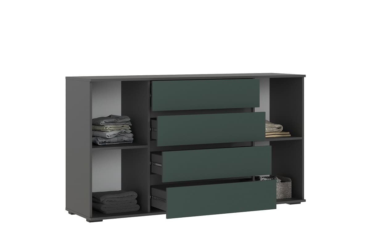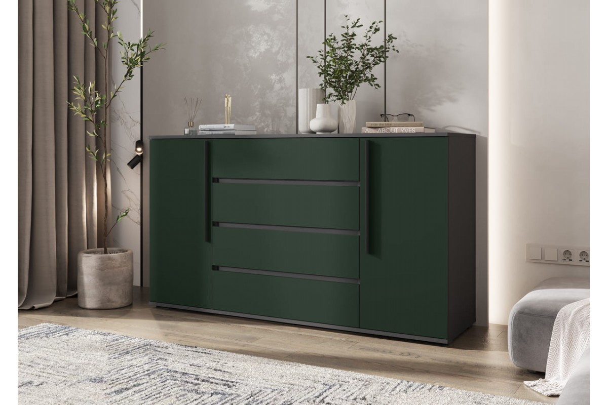 Комод «Норд» 2 двери 4 ящика (Графит - Изумруд)