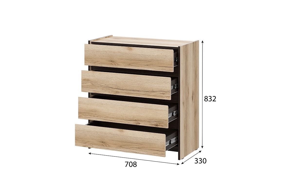 Размер: 80x100x48 см. Четыре плавно выдвижных ящика.