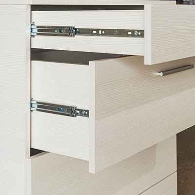 Наличие нескольких шкафчиков и шуфляд. Удобная столешница.