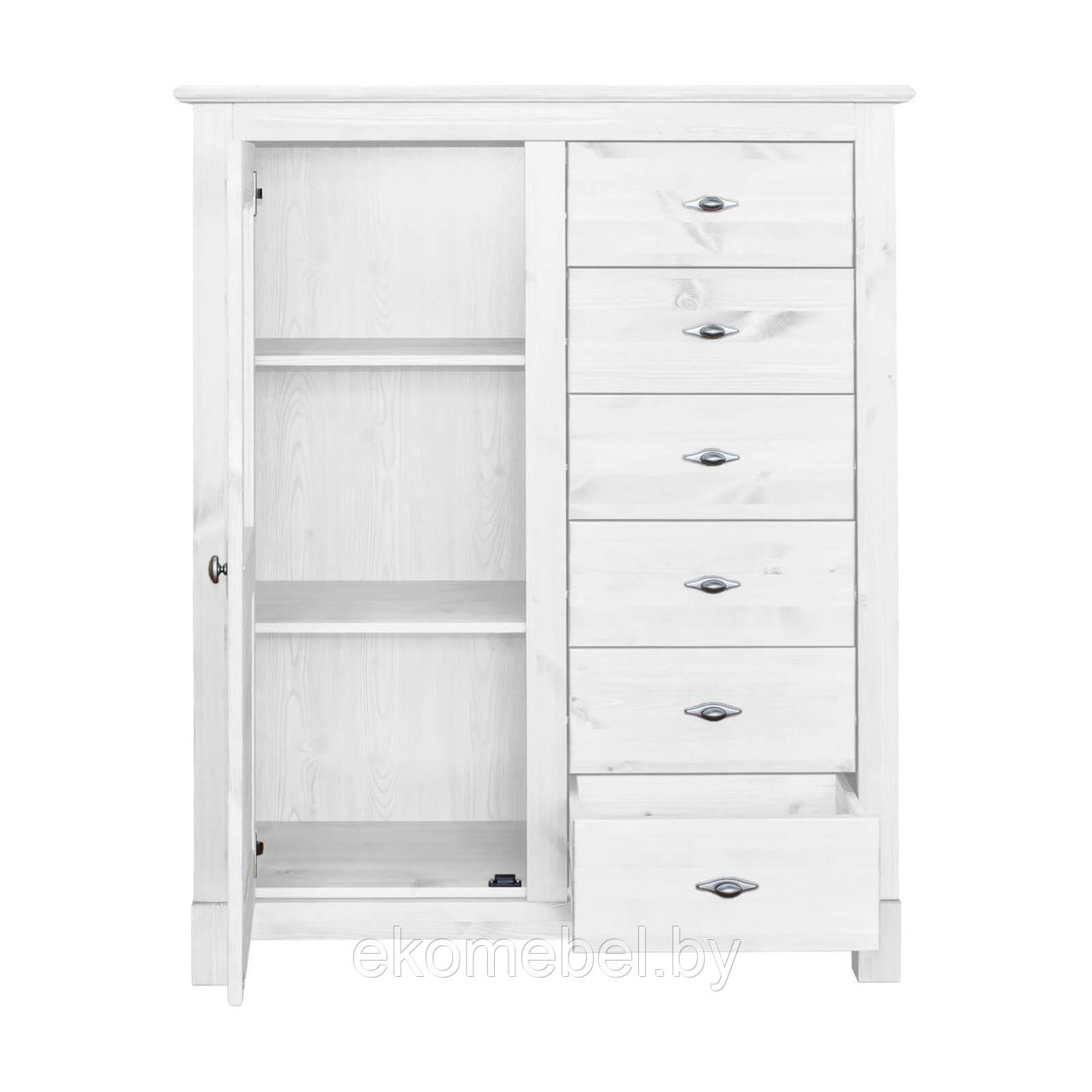 Размеры (ШхГхВ): 118х37х100 см. Изготовлен из 100% массива сосны и покрыт белым воском.