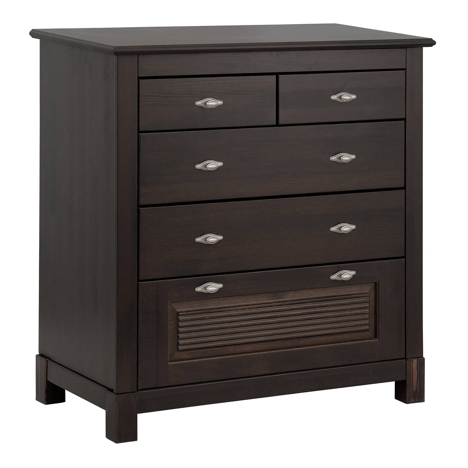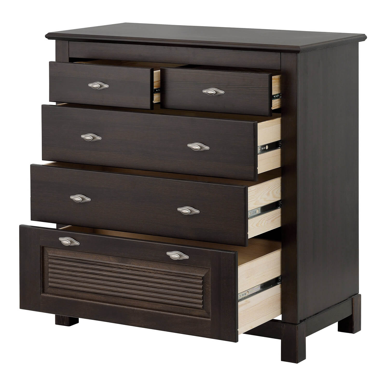 Комоды из коллекции “Рауна” отличаются простым и функциональным дизайном. Эта модель будет хорошо смотреть в спальне, гостиной или просторной прихожей. Три глубоких ящика и два для повседневных вещей отражает всю функциональность данной модели.. Удобная поверхность позволит вам разместить сувениры, фотографии и другие необходимые вещи.