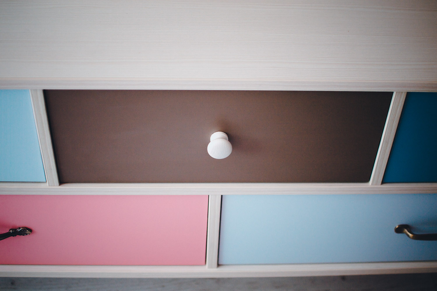 Размер комода: 80х100,5 см. Интегрированные ручки декорированы белыми вставками.