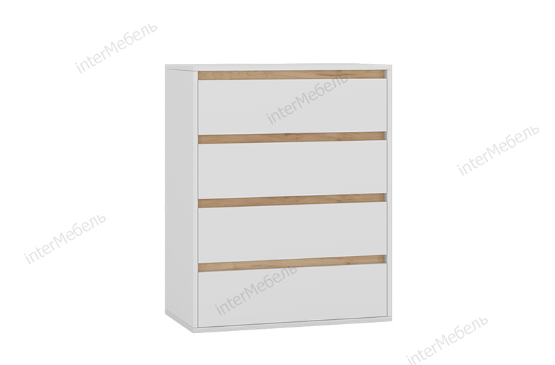 код 116078Белый матовый комод декорирован вставками в цвете светлого дуба.