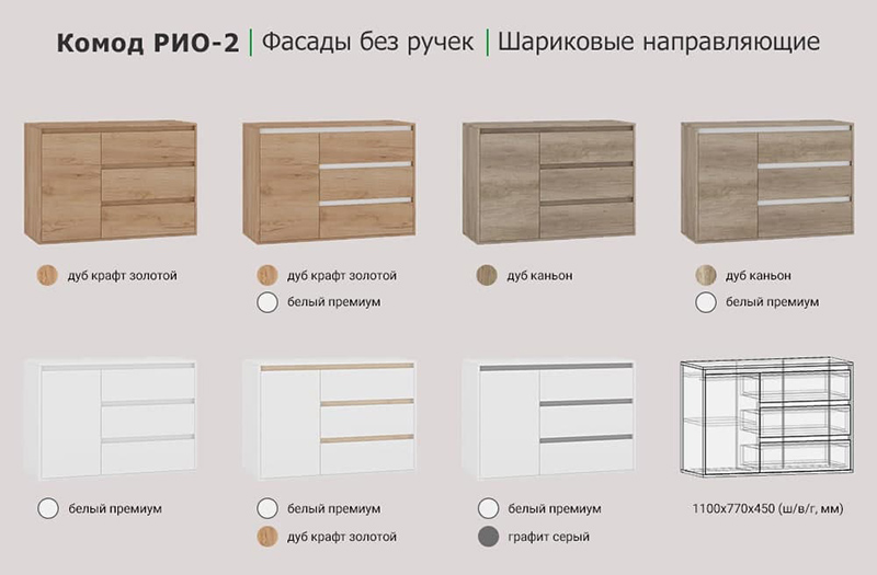 код 116087Габариты комода: 110х77х45 см. Матовые фасады без ручек.