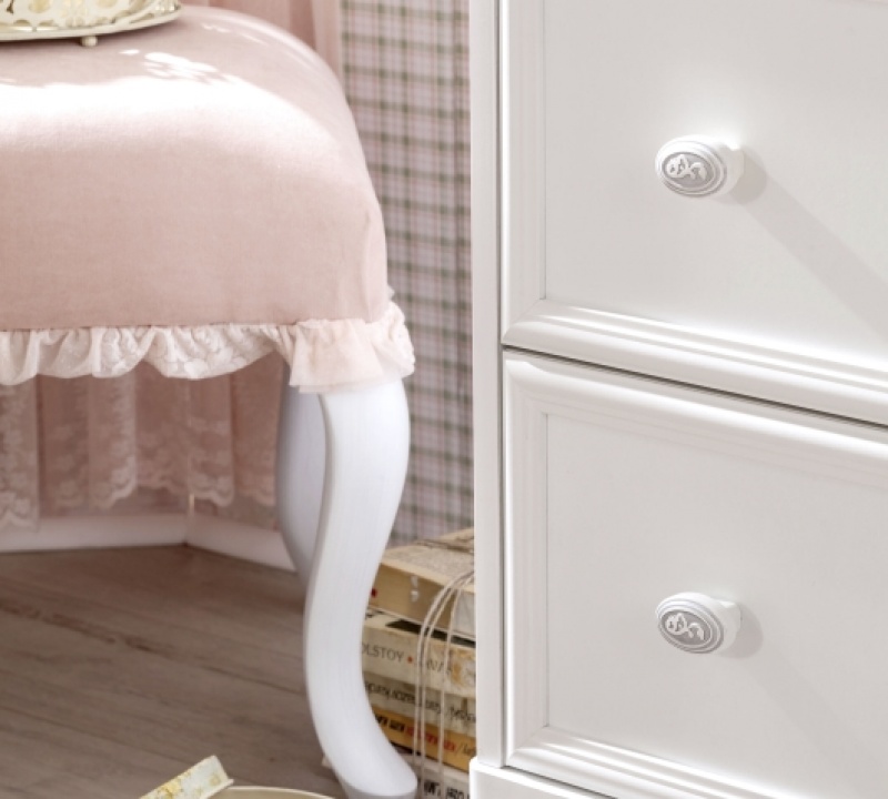 Комод с интегрированными ручками. Белый фасад, серые вставки. Ширина – 110 см.