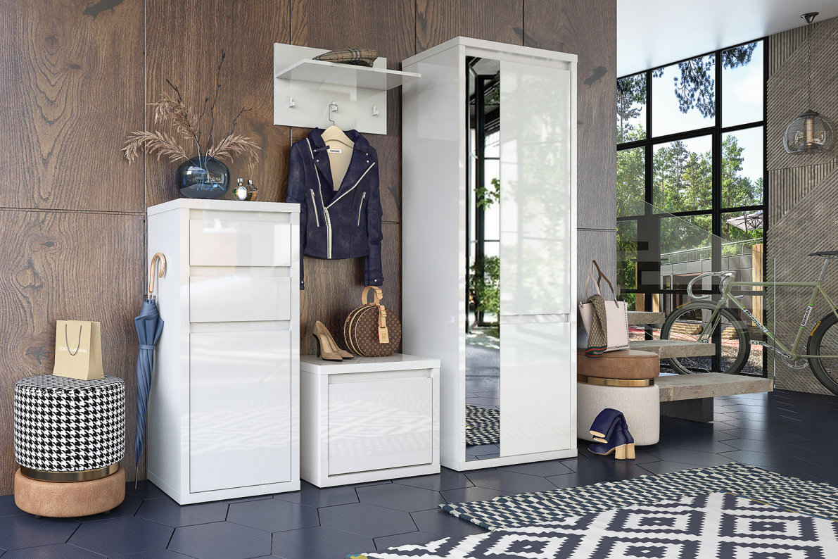 Комод выполнен из комбинации двух материалов ЛДСП и МДФ.