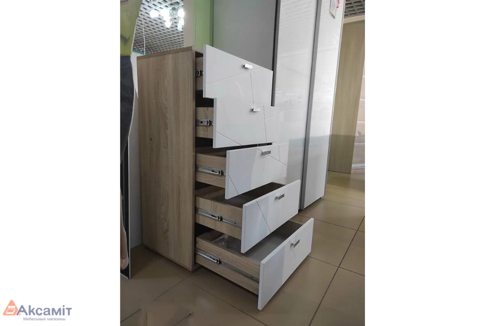 Комод с 5 ящиками «Скайлайн» (Белый шагрень)