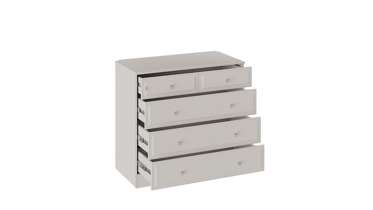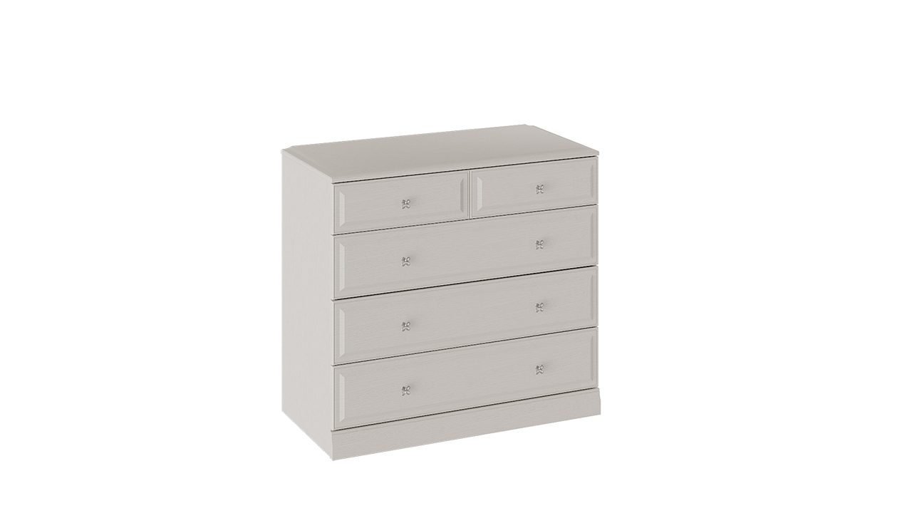 код 121717Светлый комод с выдвижными ящиками. Материал фасада: МДФ, пленка ПВХ. Металлические фигурные ручки. Гарантия производителя: 24 месяца.