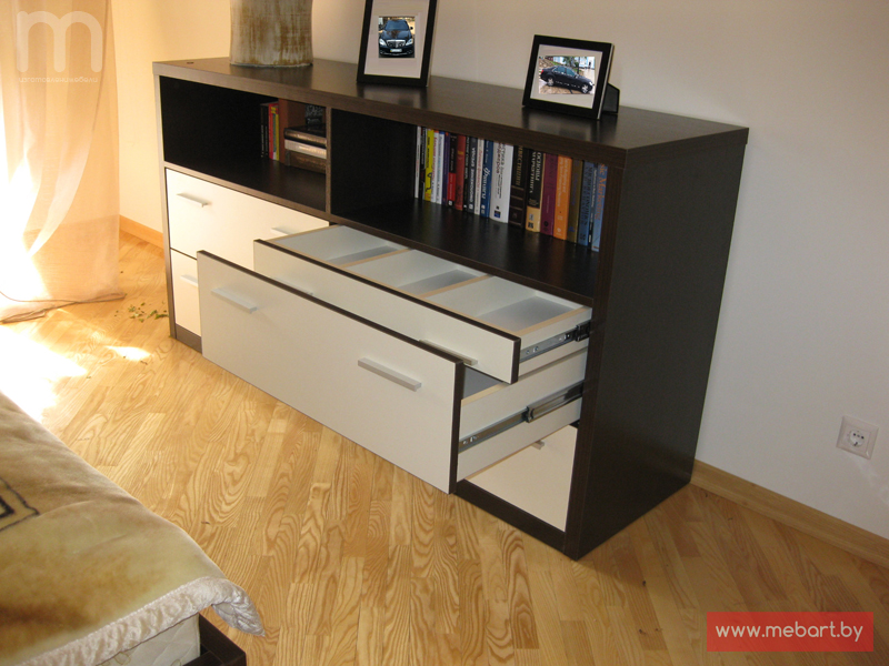 Яркий комод с оригинальным дизайном является достаточно функциональным предметом мебели. Такой комод отлично подойдет для детской спальни, гостиной и даже зала. В комплекте имеется множество отделов для хранения самых разных вещей. Створки модели оснащены удобными металлическими ручками.