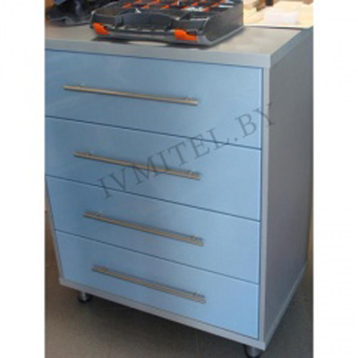 Комод – необходимая вещь в каждом доме. Комод имеет четыре выдвижных ящика на бесшумных направляющих. Фасад исполнен в синем цвете. Широкие прямоугольные ручки изготовлены из хрома.