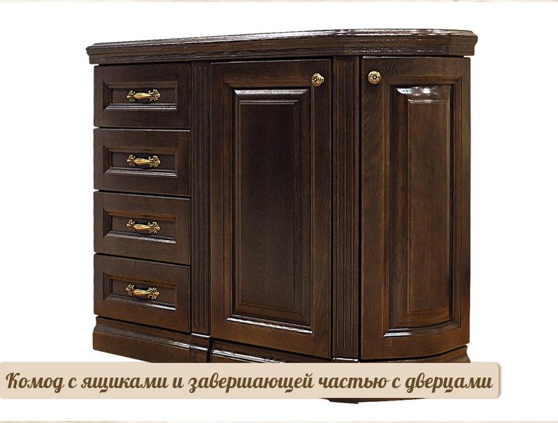 Комод выполнен из комбинации двух материалов ЛДСП и МДФ.