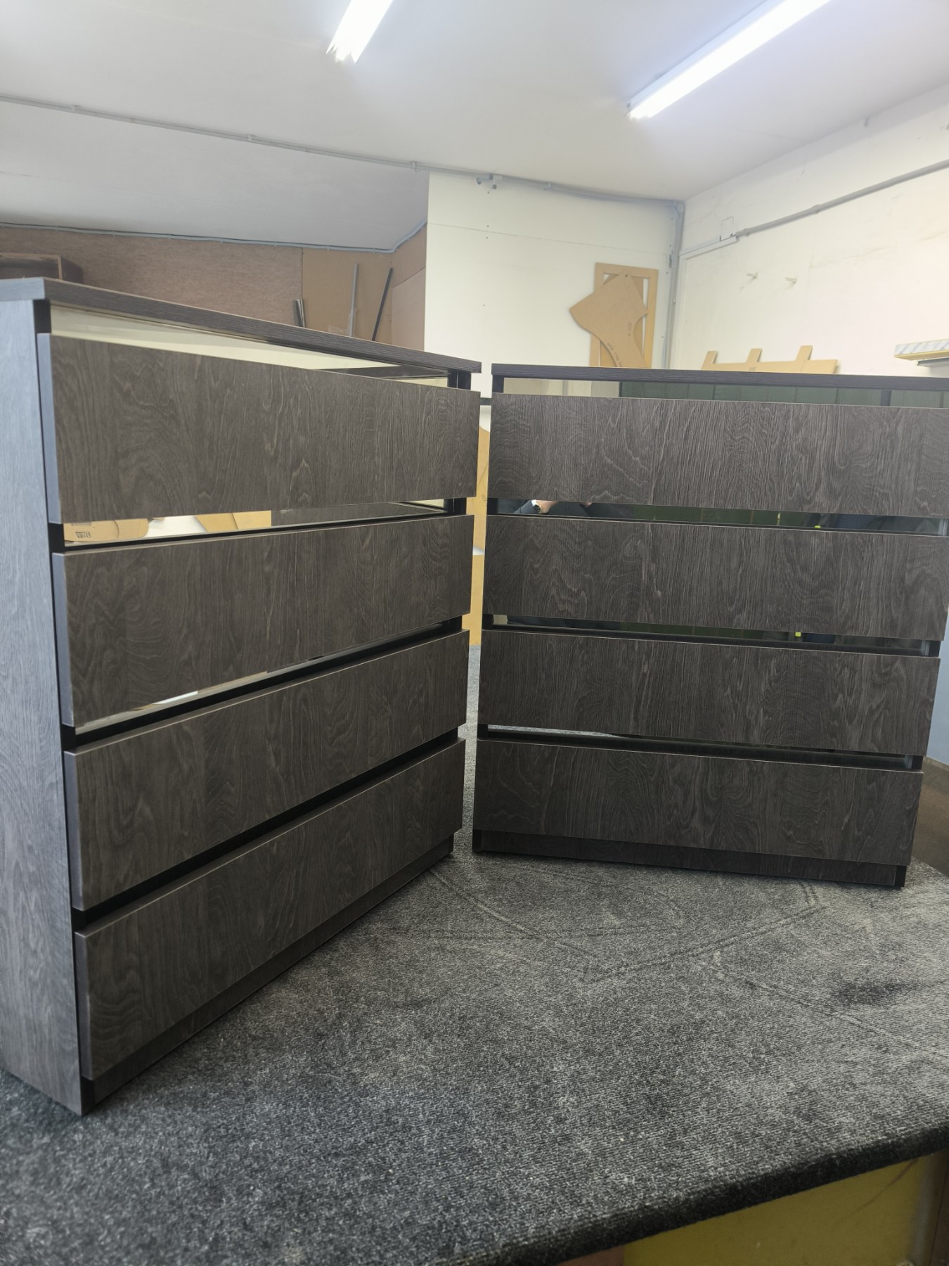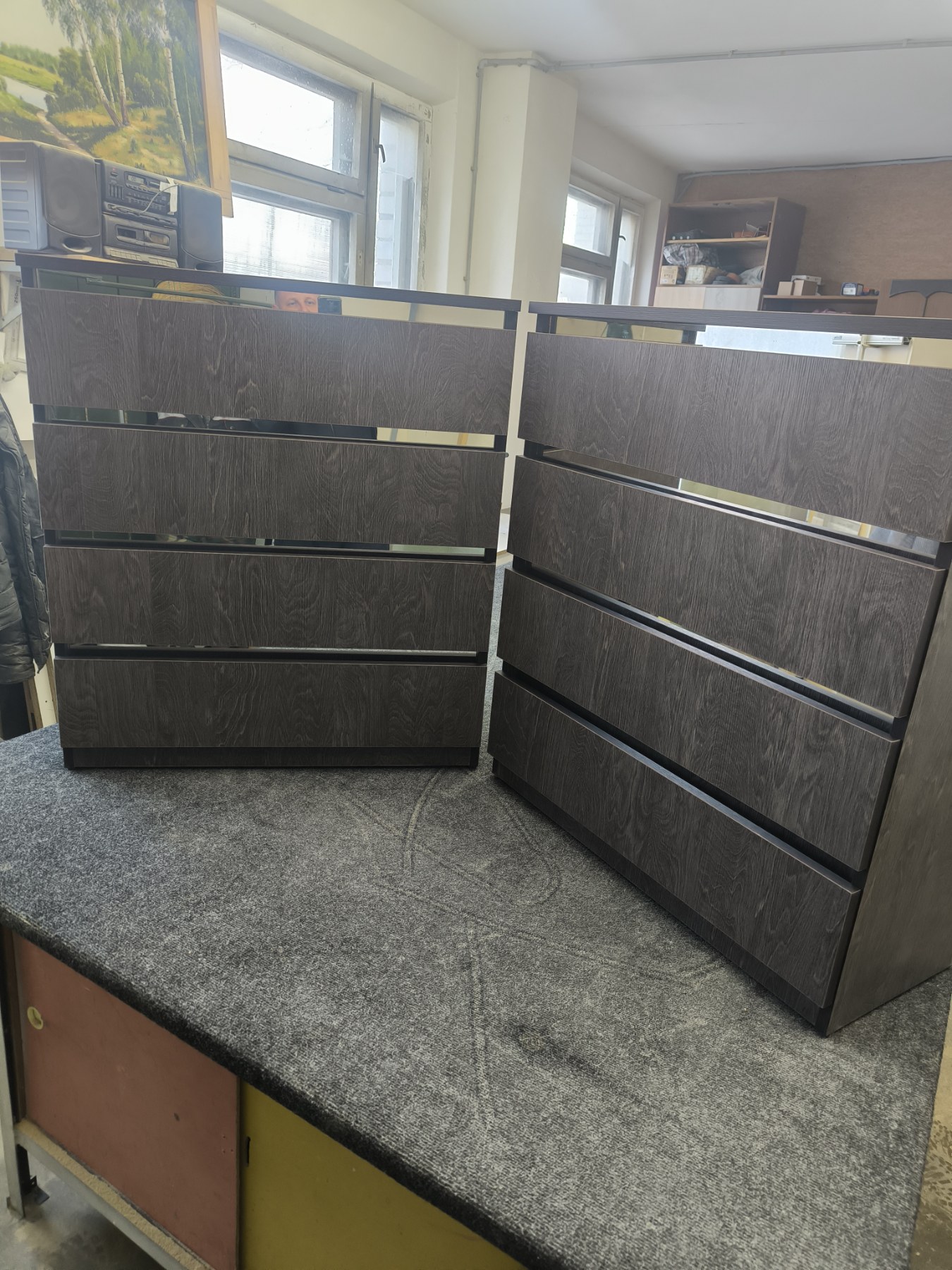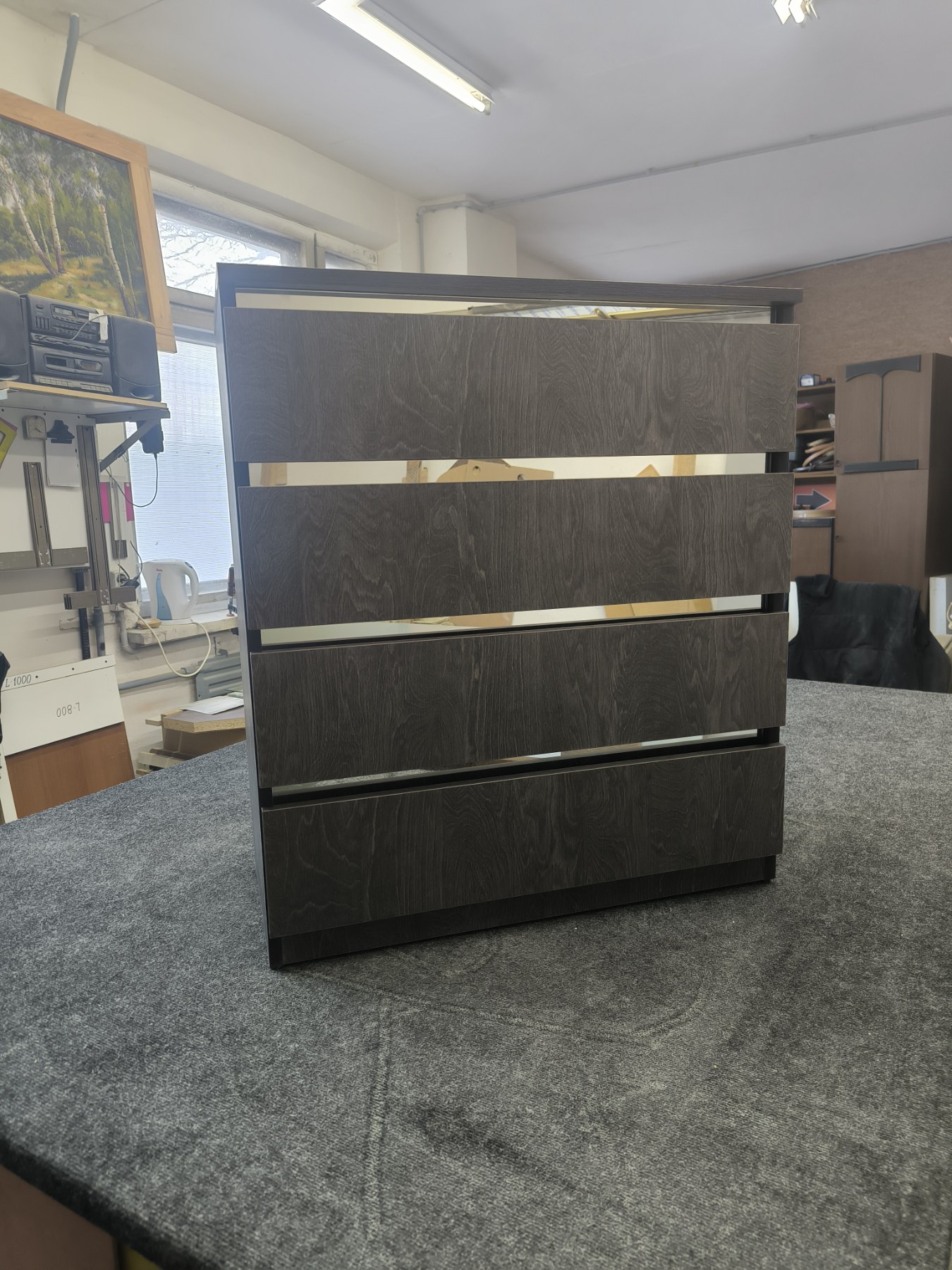 Комод с декором дуба в сером цвете. Конструкция из ЛДСП, шариковые направляющие.