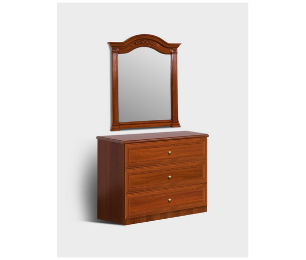 Комод «Европа 7» снабжен тремя выдвижными ящиками. Он идет в комплекте вместе с зеркалом. Модель станет отличным дополнением в классический интерьер. Цветовое оформление – орех.