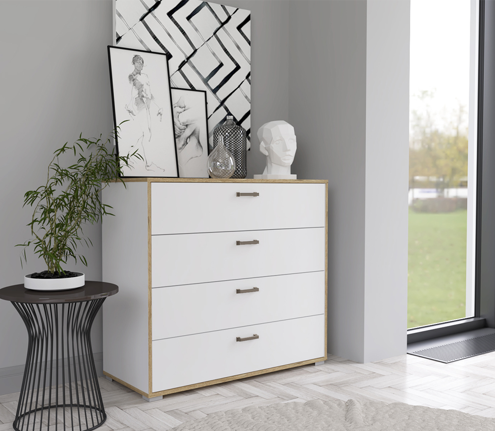 Комод «SC-4Ш» белый платинум-дуб золотой