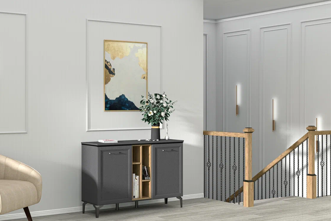 Материал корпус (цвет) ЛДСП (Антрацит), полка открытая - ЛДСП (Дуб Крафт золотой)