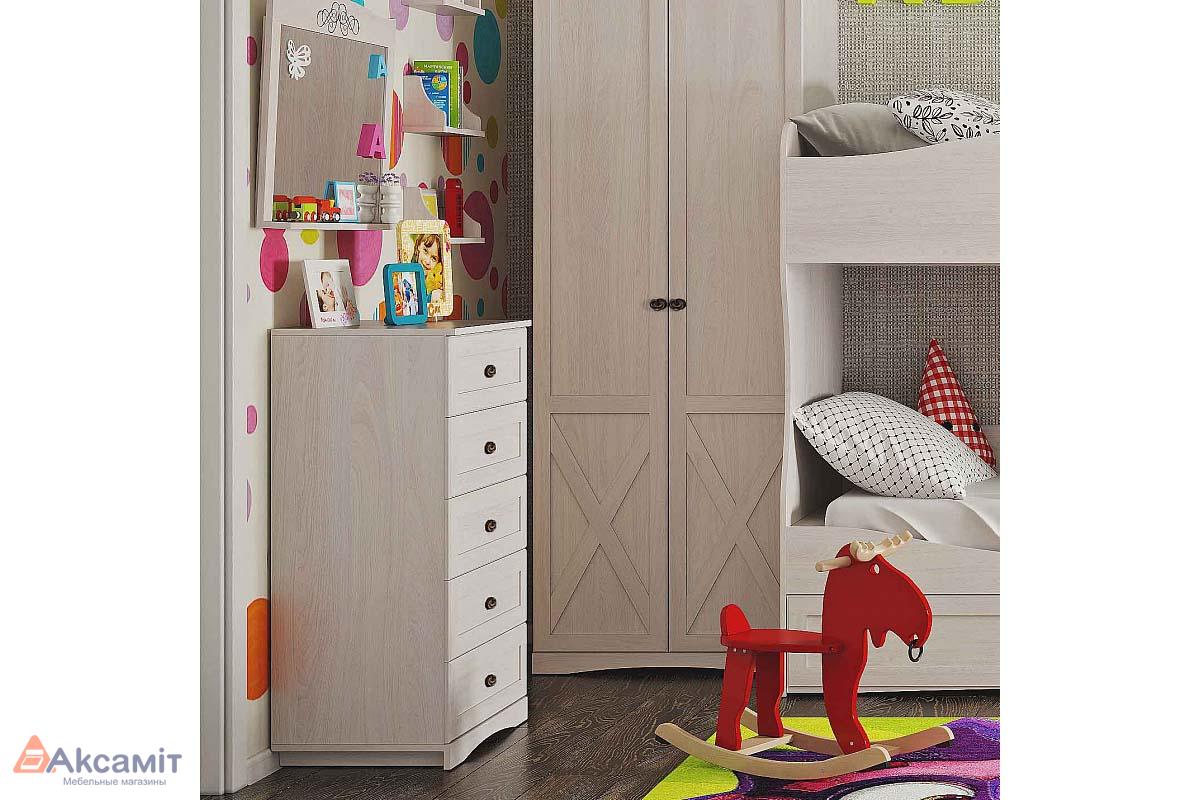 Высокий комод в спальню или в гостиную с пятью ящиками на шариковых направляющих позволит рационально использовать площадь комнаты. Повесьте над ним Sherlock 7 Зеркало или установите Sherlock 55 Трюмо с ящиками - и эргономичный вариант туалетного столика готов. Ящики глубиной 35 см, высотой 14 см, шириной 54 см выдерживают нагрузку до 20 кг каждый.