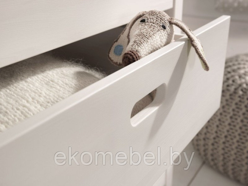 Размеры (ШхГхВ): 118х37х100 см. Изготовлен из 100% массива сосны и покрыт белым воском.