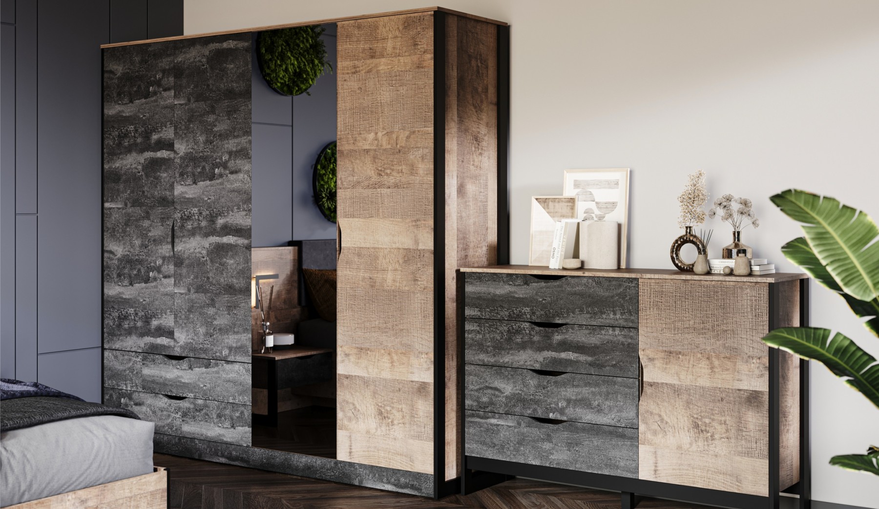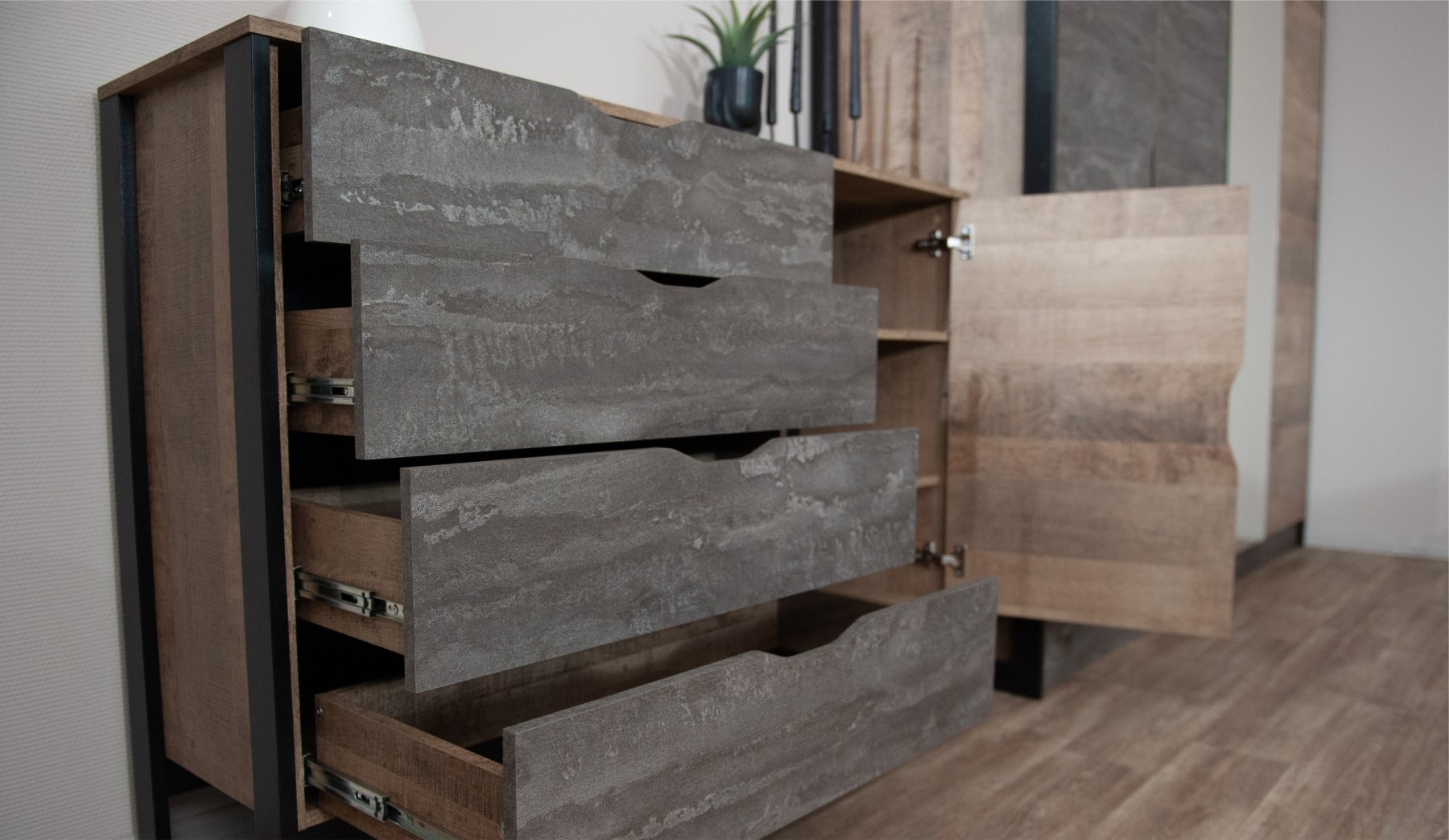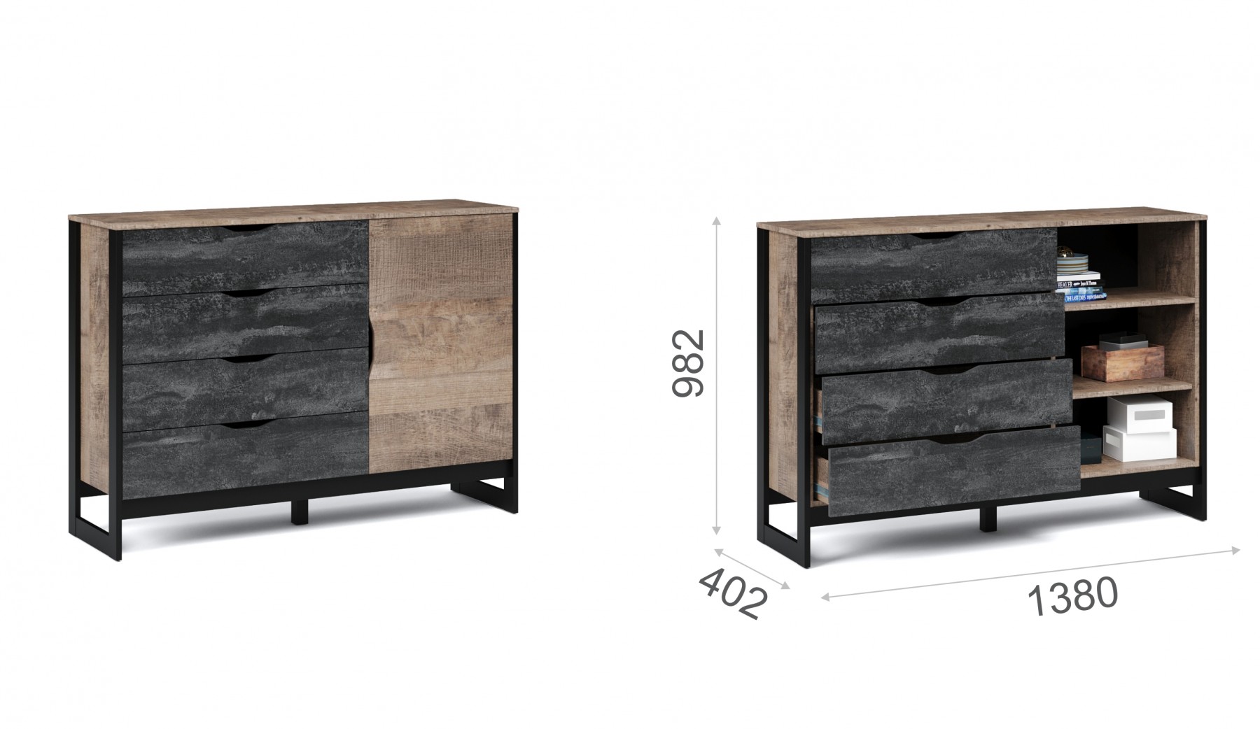 Комод «Стокгольм» 1д4ящ Дуб гранж песочный/железный камень