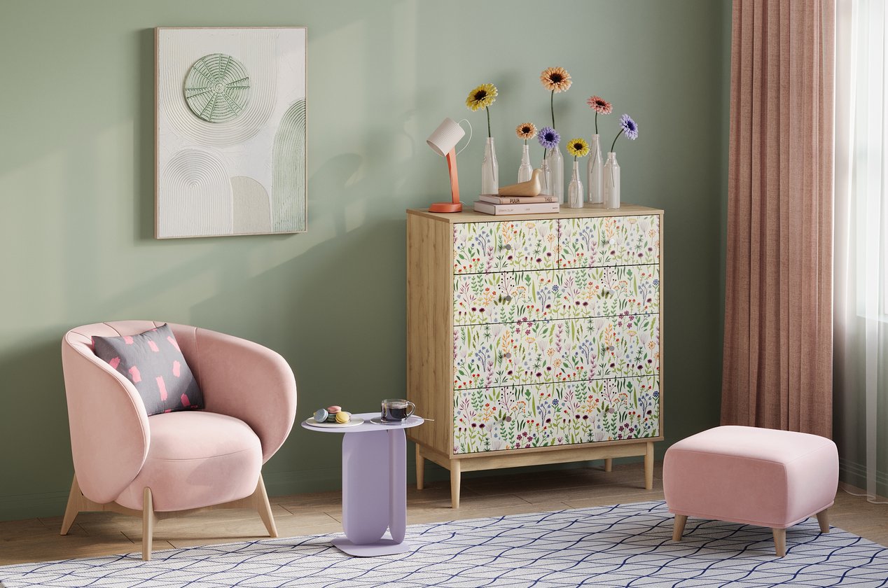 Это товар из весенней коллекции “Цветы. Эстетика цветочных рынков мира”, которую мы создали, вдохновившись флорой самых разных стран. В серию входят мягкая мебель и системы хранения, текстиль, декор и освещение, а также журнальные столики — в природных легких оттенках.