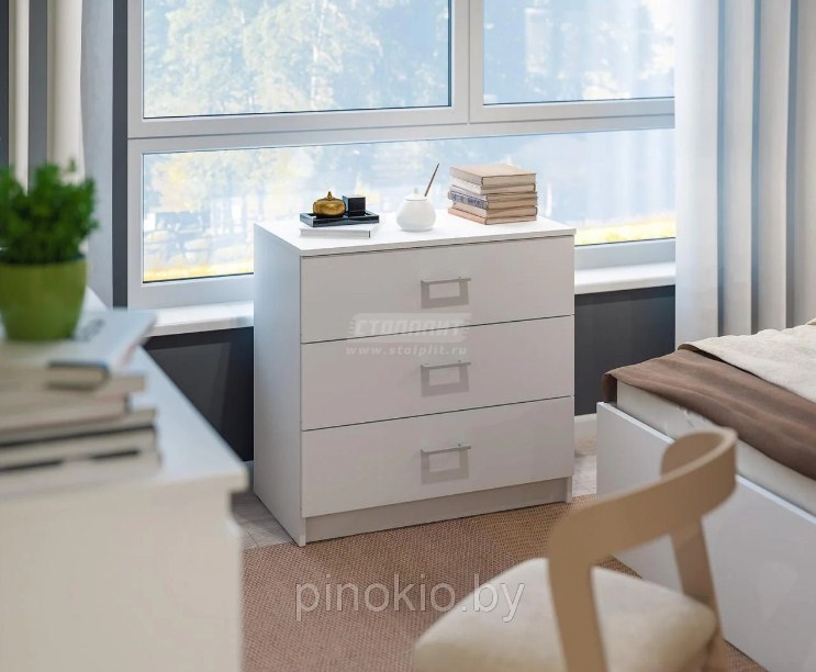 Комод «Бари 80-4ш» (белый текстурный - берёза)