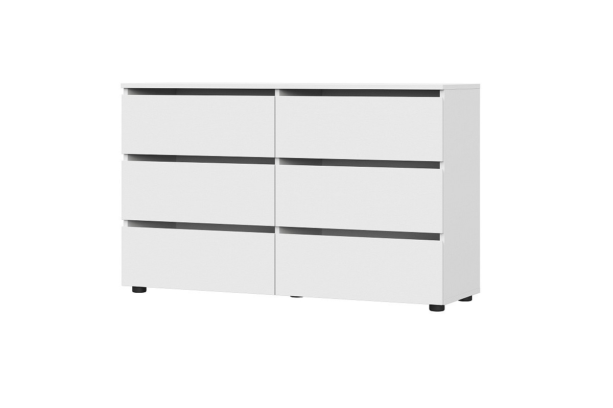 Белый матовый комод декорирован вставками в цвете светлого дуба.