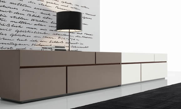 Матовый корпус и глянцевая створка. Четыре выдвижных ящика. Фасад без ручек.