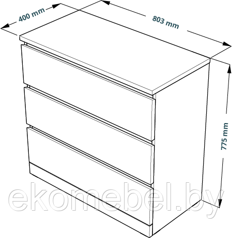 Габаритные размеры комода: