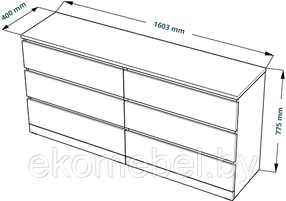 код 148688Размеры (ШхГхВ): 160х40х77 см. 6 выдвижных ящиков.