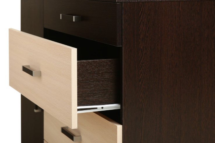 Материал: каркас - ЛДСП; фасады - МДФ ламинированная задняя стенка и дно ящиков - ДВП кромка - ПВХ в цвет 0,4 мм направляющие - роликовые