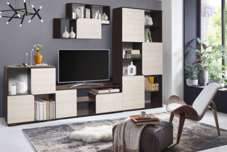 код 124453Комод для гостиной открывается при помощи фрезеровок на дверцах.