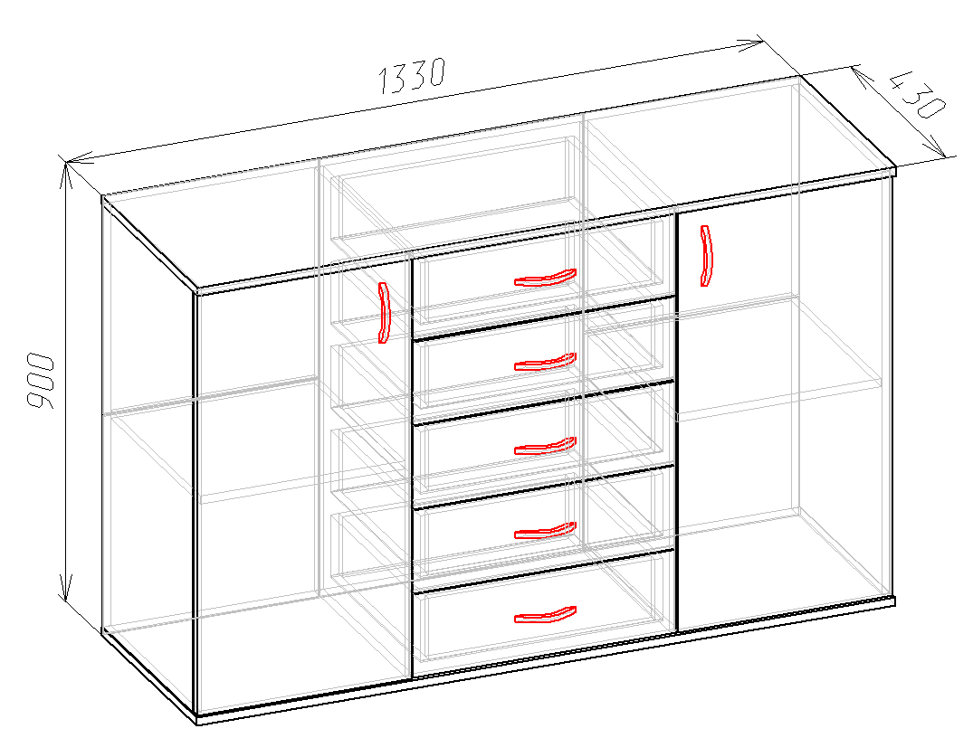 Комод «Мюнхен» - порадует Вас своей вместительностью и функциональностью. В гостиной, спальне, детской или прихожей комод займёт достойное место. Центральная секция комода представлена 5 выдвижными ящичками.По бокам у комода расположены две закрытые распашными дверками секции с одной полочкой в каждой. В комоде много места для вещей, одежды, документов, посуды и личных вещей. Сверху на комоде удобно разместятся ночничок, любимый цветок, фото в рамках или даже телевизор.
