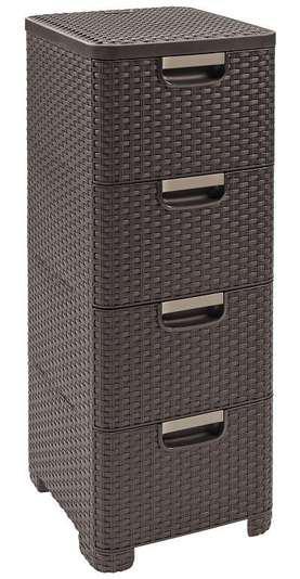 Узкий комод x4 «Style Rattan Drawer x4» особенно удобен в небольших помещениях, когда требуется хранить много вещей и сохранить жизненно-важное пространство. Комод выполнен из полипропилена, материала выдерживающего сложные условия, и способный выносить повышенную влажность. Плетеная фактура наделяет комод ощущением уютной мебели.