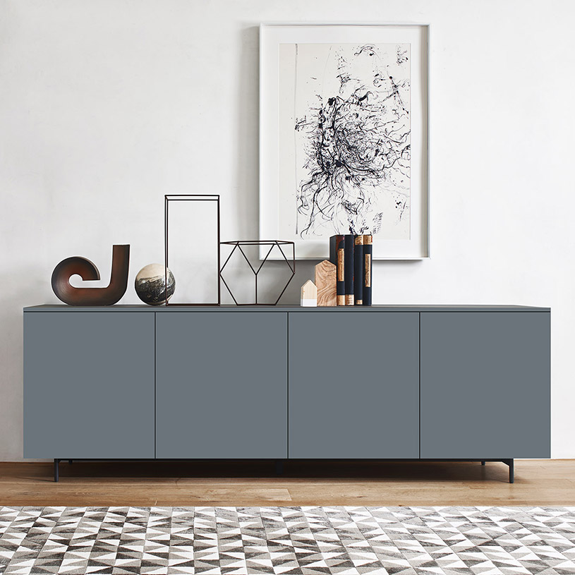 Комод прямоугольной формы на небольших ножках. Подойдет для спальни, гостиной либо прихожей. Фасады и корпус комода выполнены в матовом сером цвете, который будет прекрасно гармонировать с любым интерьером.
