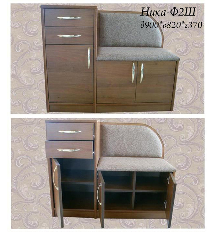 Набор предусматривает высокий комод, тумбу и сиденье со спинкой. Высококачественные материалы и комплектующие обеспечивают надежность и долговечность конструкции. Обивкой сиденья и спинки служит мебельная ткань.