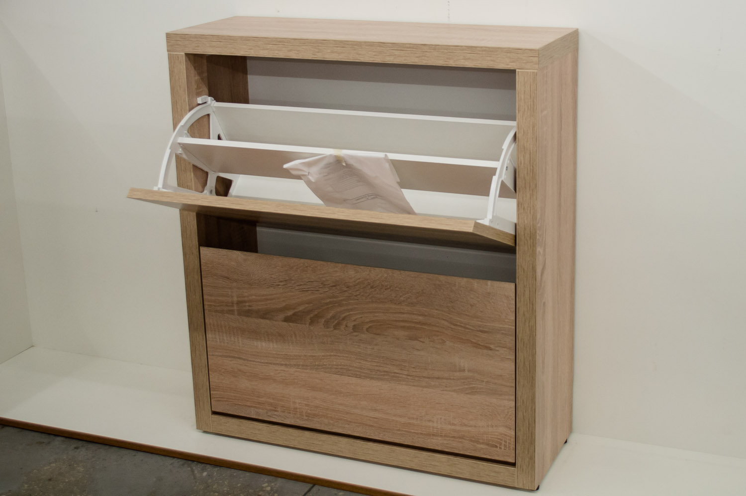 Обувница «Элана 2.70» позволяет размещать больше обуви, поскольку оснащается двумя откидными отделениями. Фасады модели выполнены без использования традиционных ручек. Обувница исполнена в текстуре натурального древесного цвета. Конструкция достаточно компактная, поэтому она легко впишется в интерьер даже небольшой прихожей.