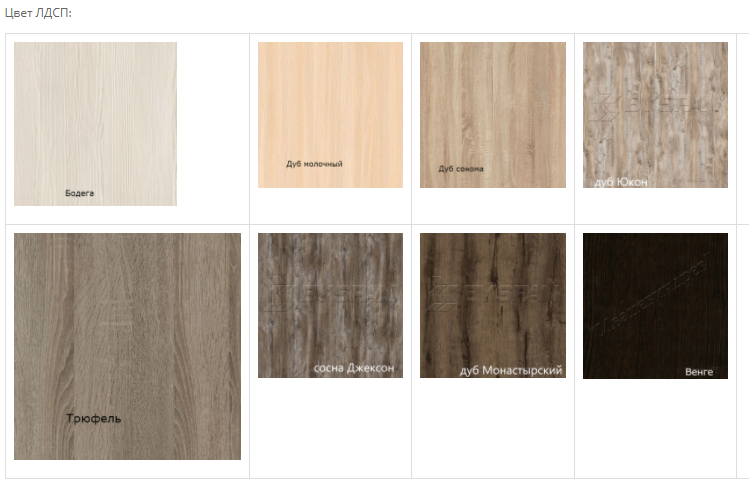 Цвет (фасад/корпус): Венге, Сонома, Трюфель, Бодега, дуб Молочный, дуб Юкон, дуб Монастырский, сосна Джексон.