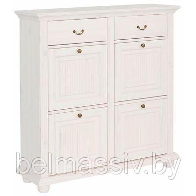 код 88872Широкая белая тумба с рифлеными филенками и двумя выдвижными ящиками под крышкой.