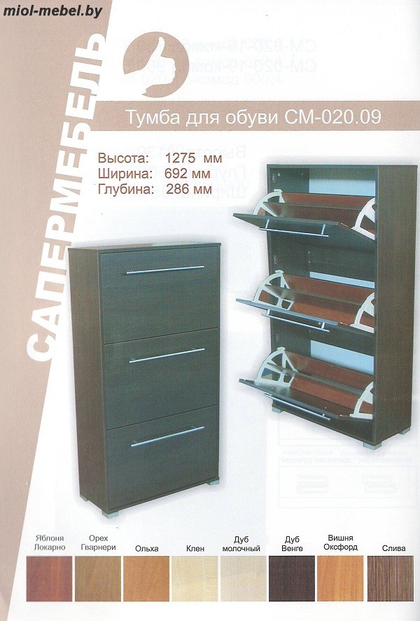 код 88071Удобная обувница для прихожей на три отдела. Расцветку корпуса можно подобрать на свой вкус.