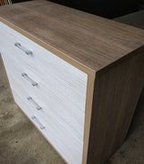 Комод с декором дуба в сером цвете. Конструкция из ЛДСП, шариковые направляющие.
