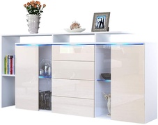 Матовый корпус и глянцевая створка. Четыре выдвижных ящика. Фасад без ручек.