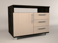Комод выполнен из комбинации двух материалов ЛДСП и МДФ.