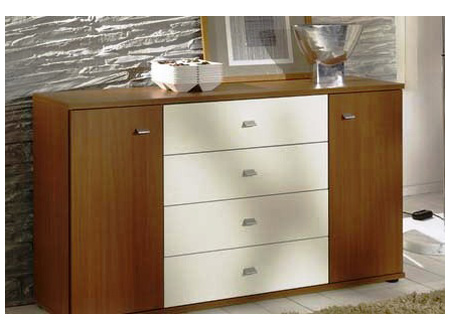 Цвет: каштан. Комбинация распашных шкафчиков и выдвижных ящиков.