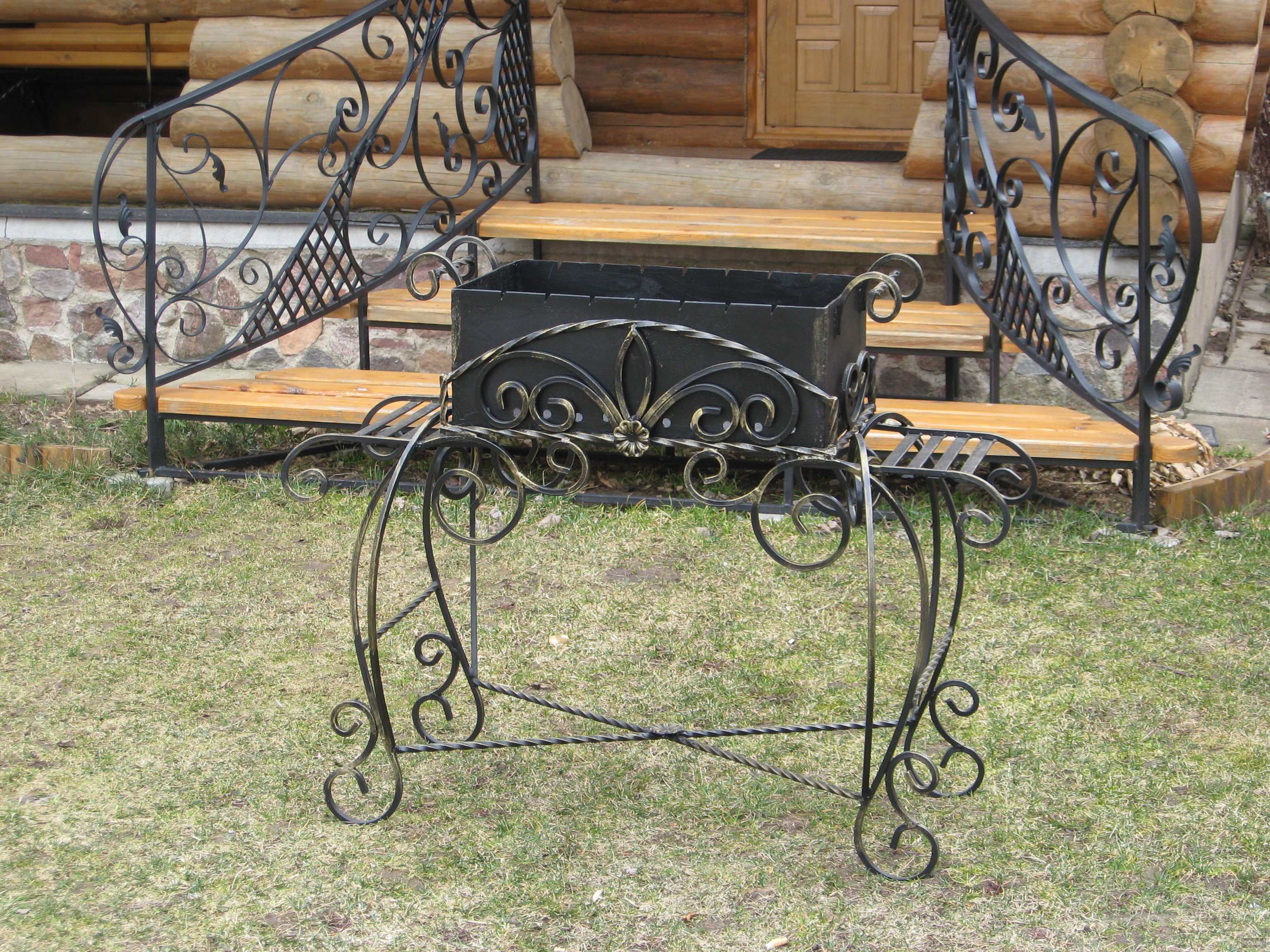 Складная конструкция позволяет удобно хранить и переносить мангал. Витые декоративные элементы.