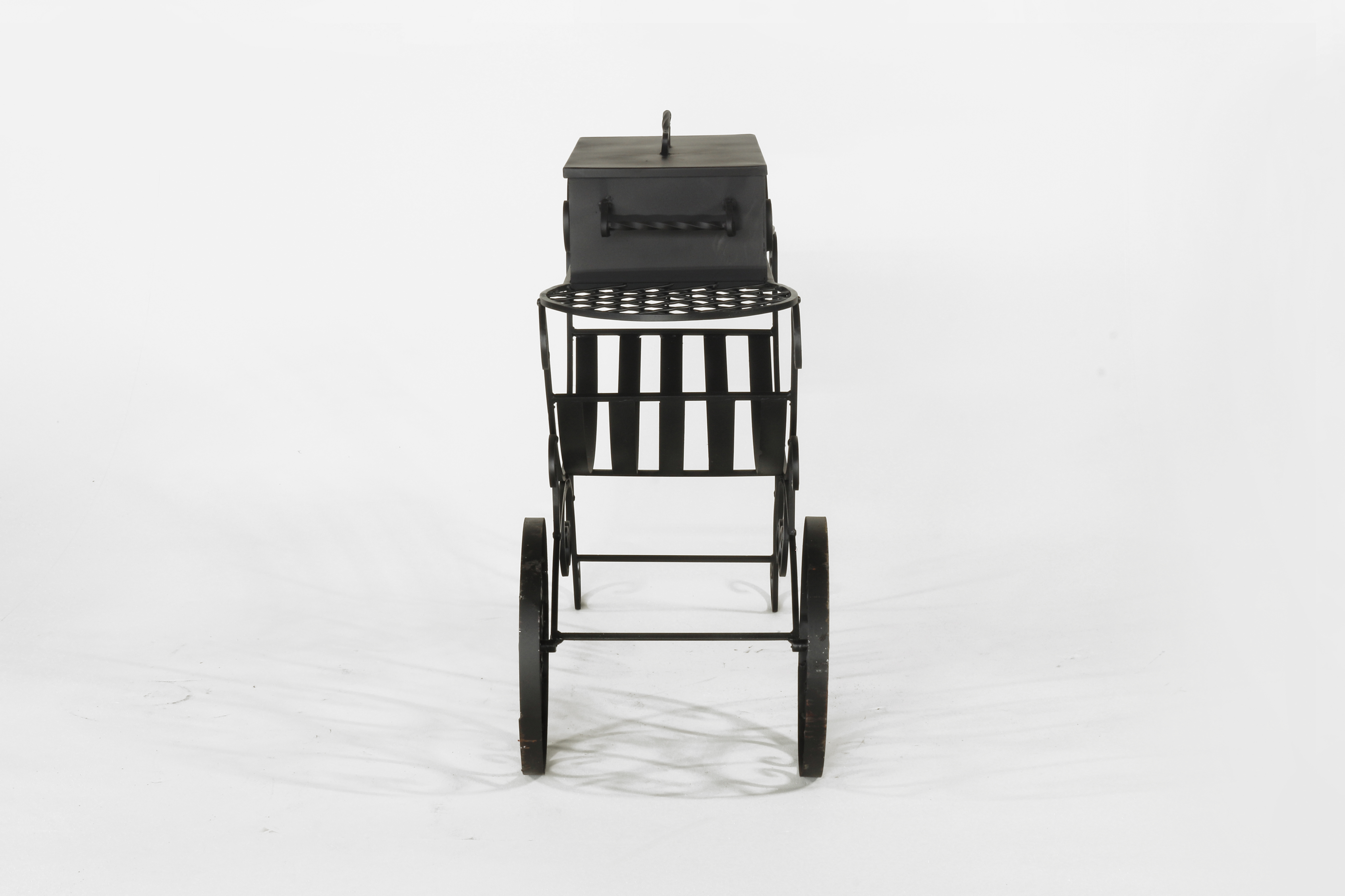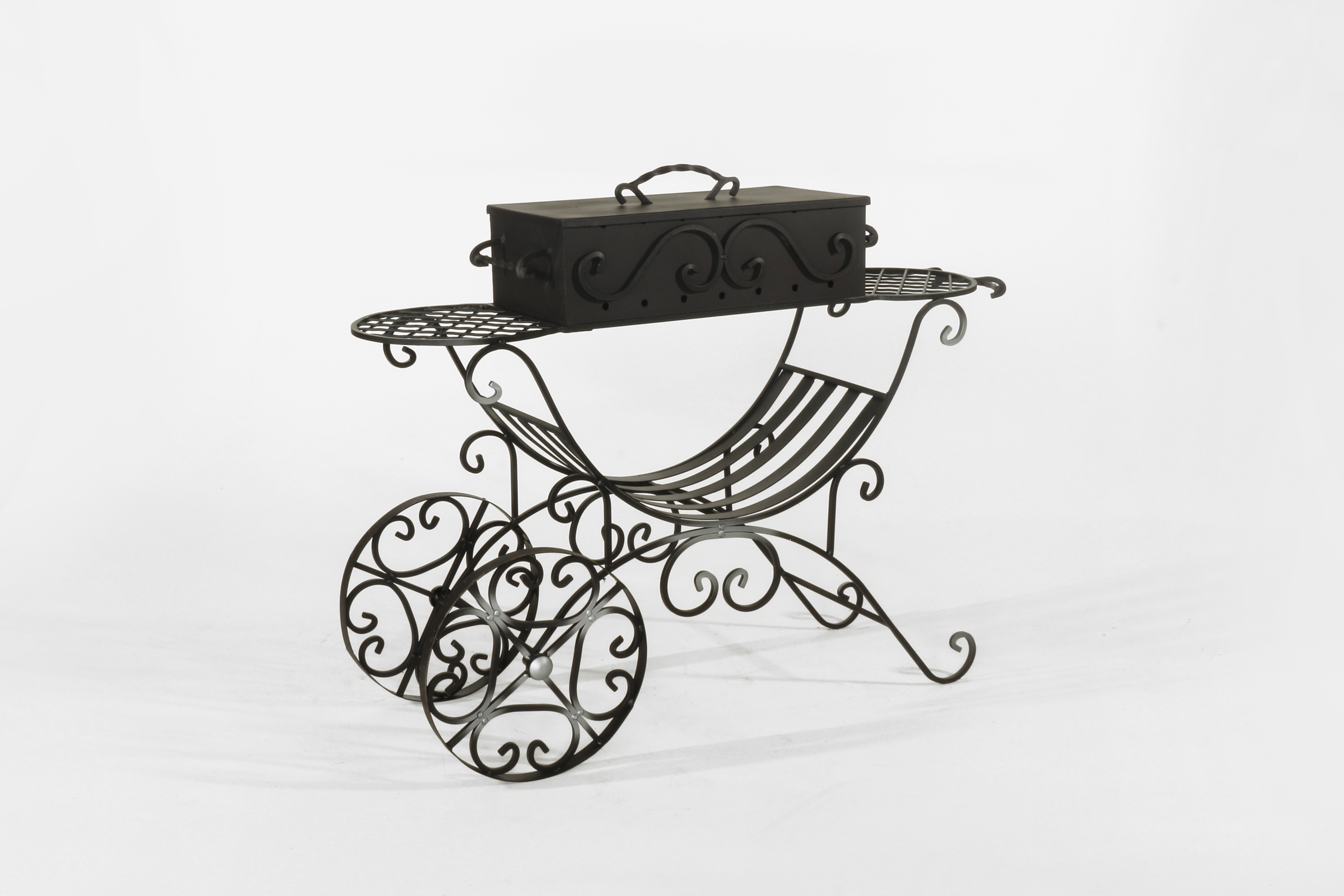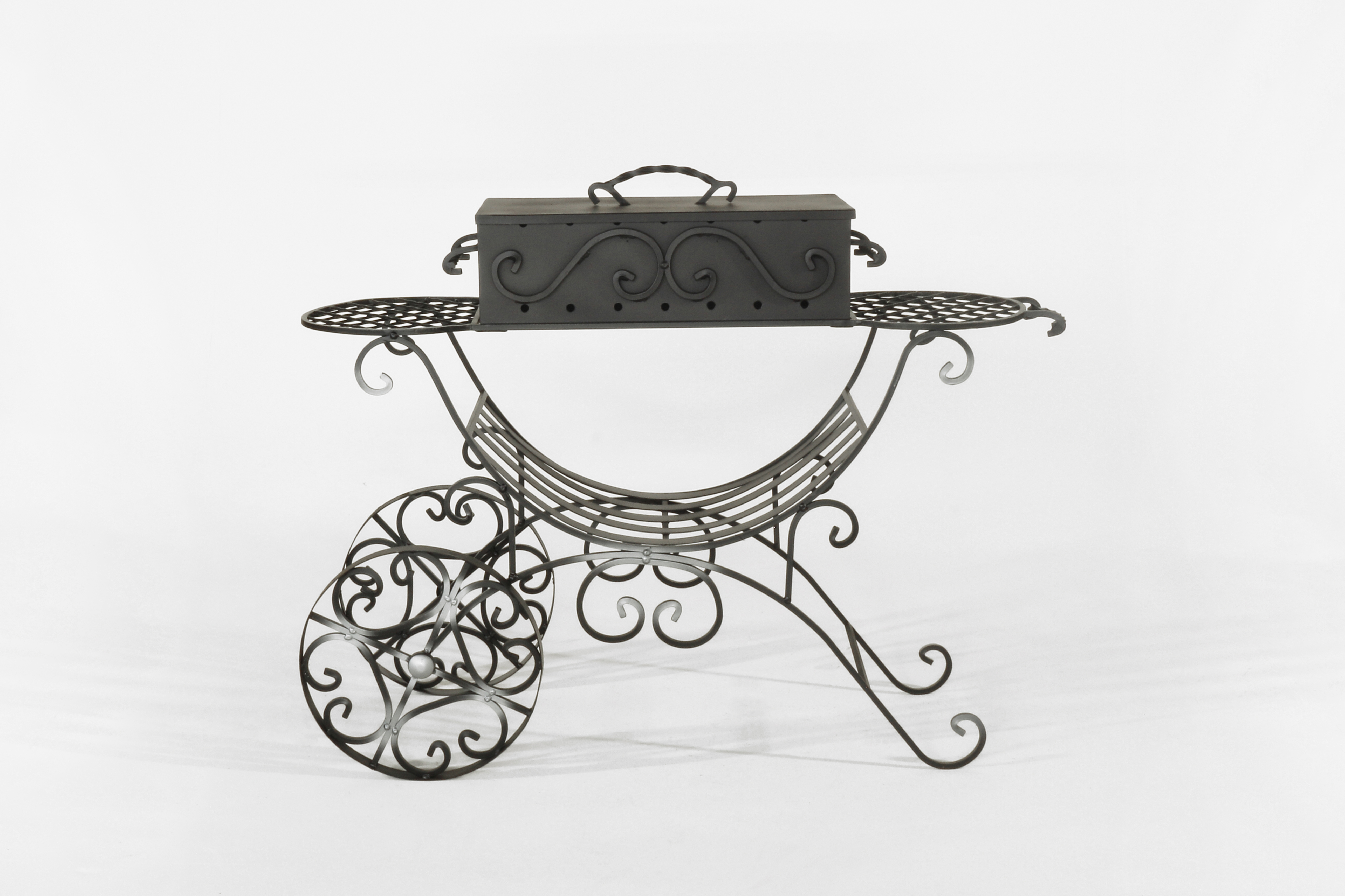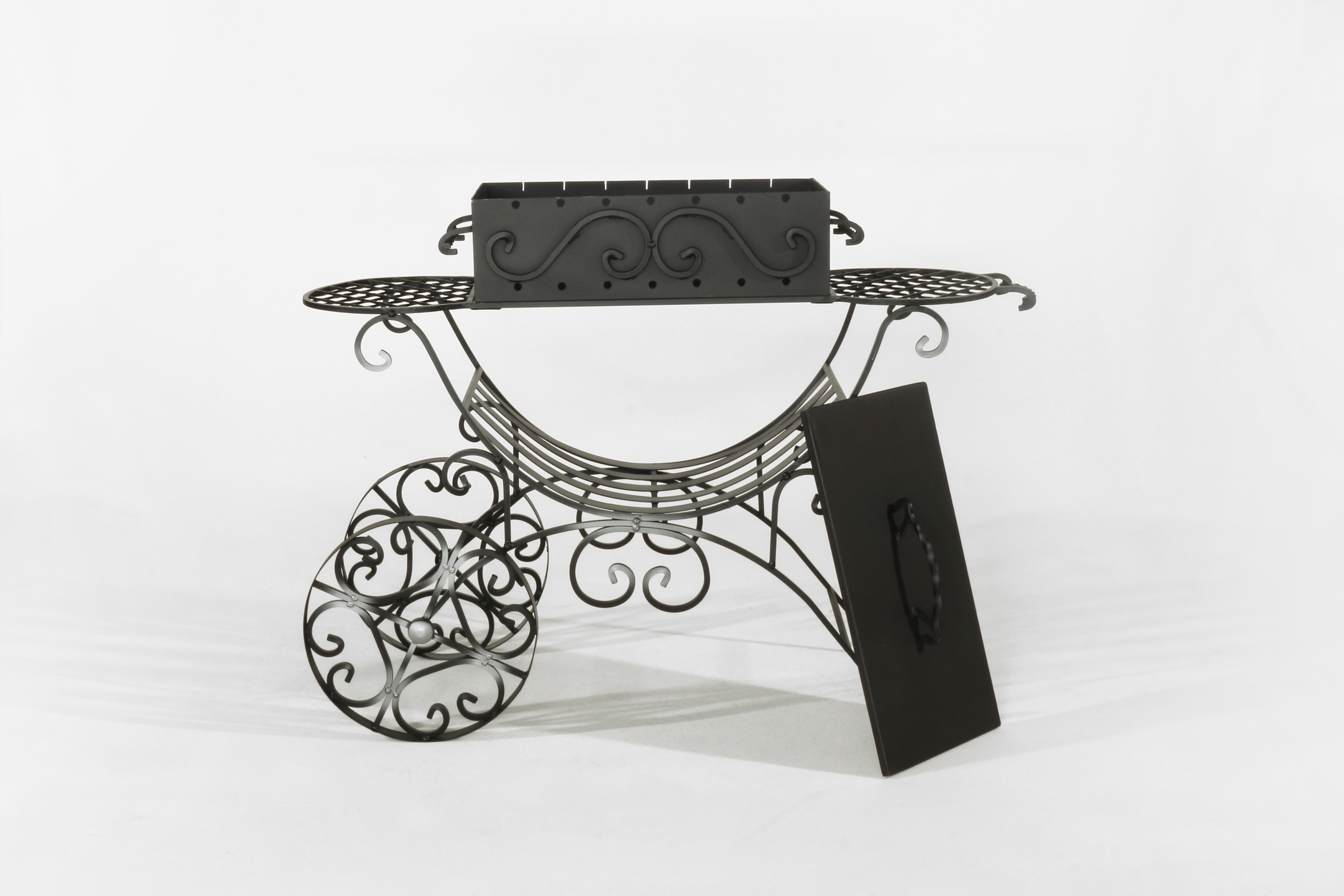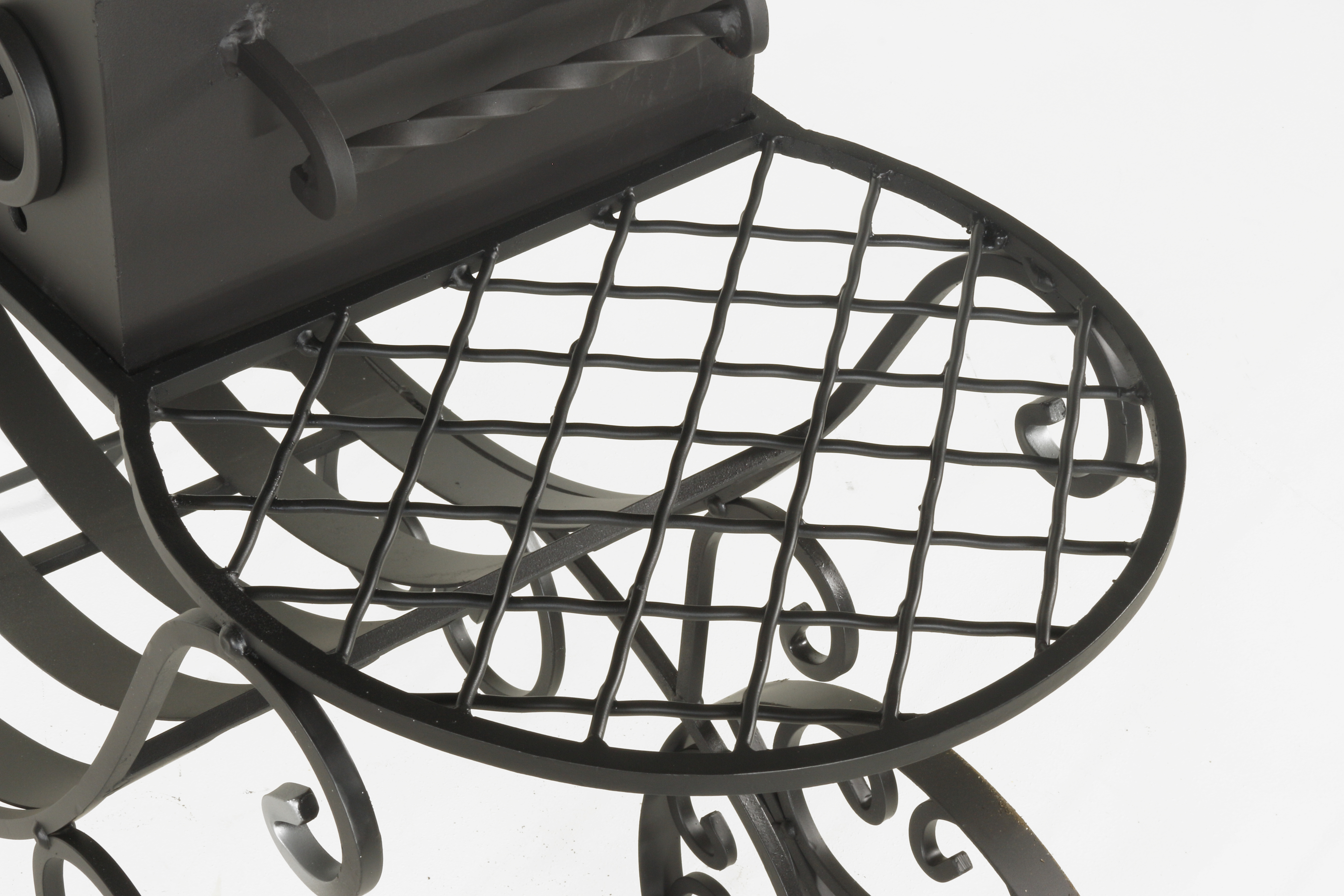 600 х 300 х 180 мм., жаровня съемная, со съемной крышкой, окрашена термостойкой краской RAL 9005 серо-черного цвета.