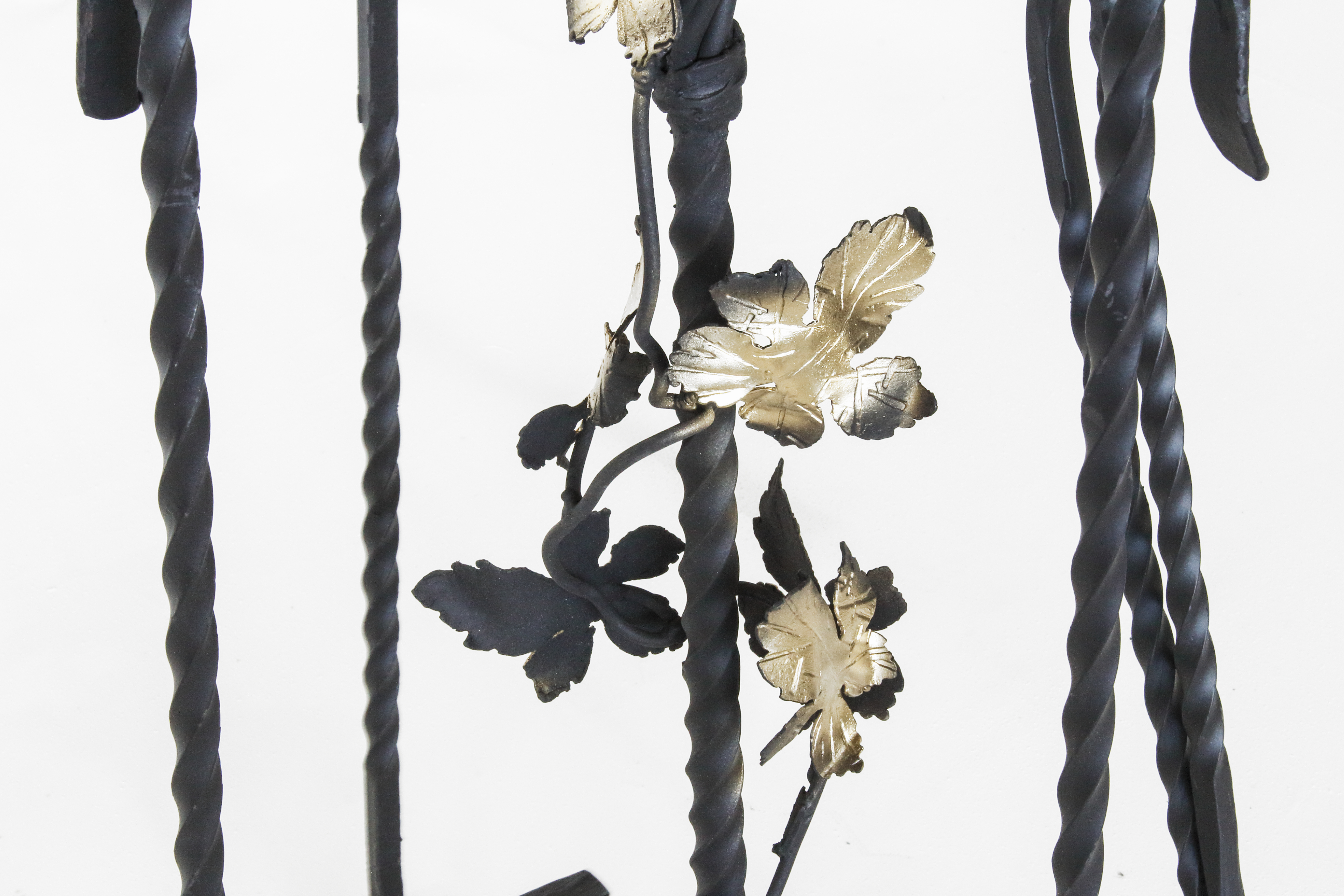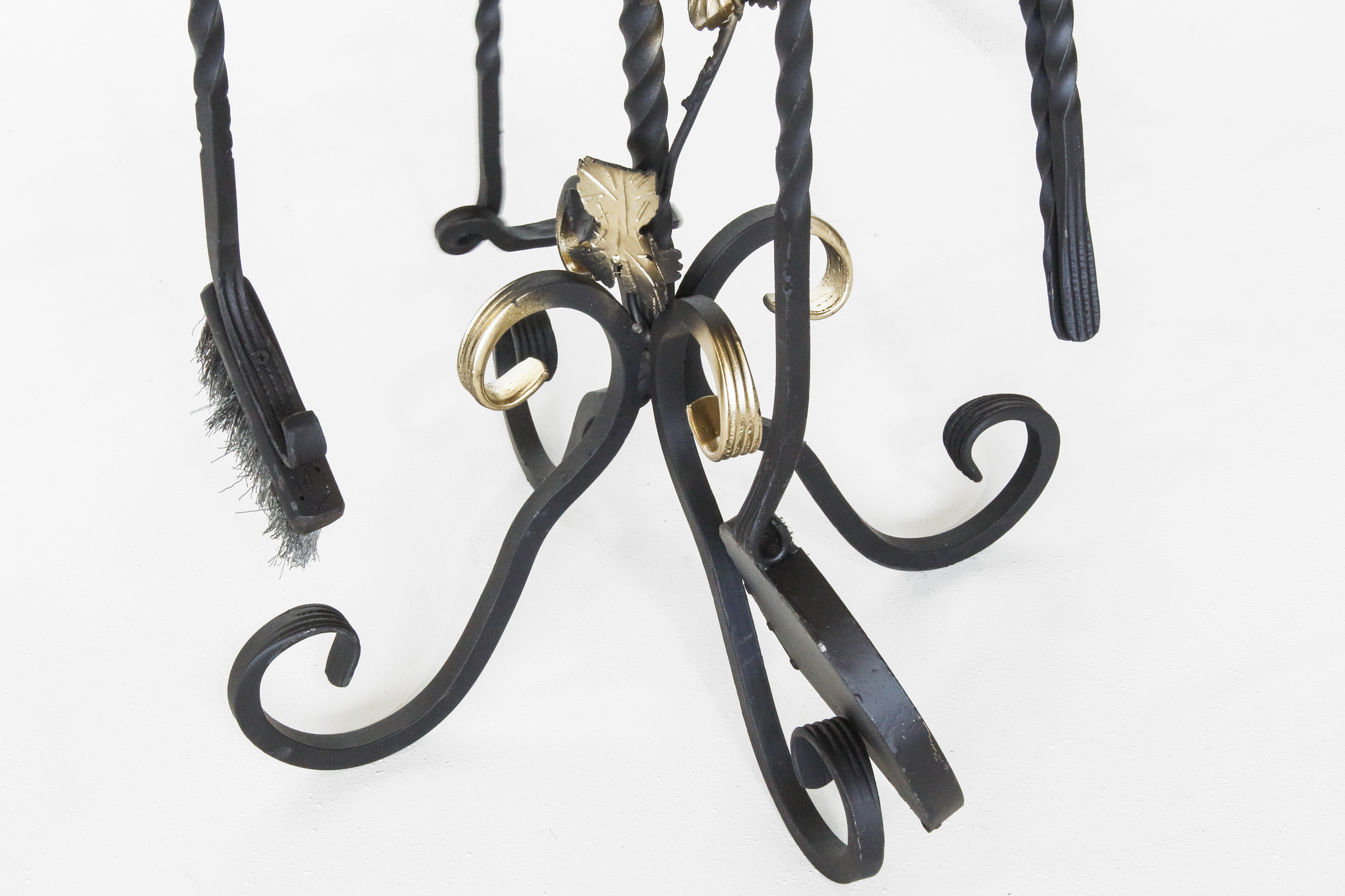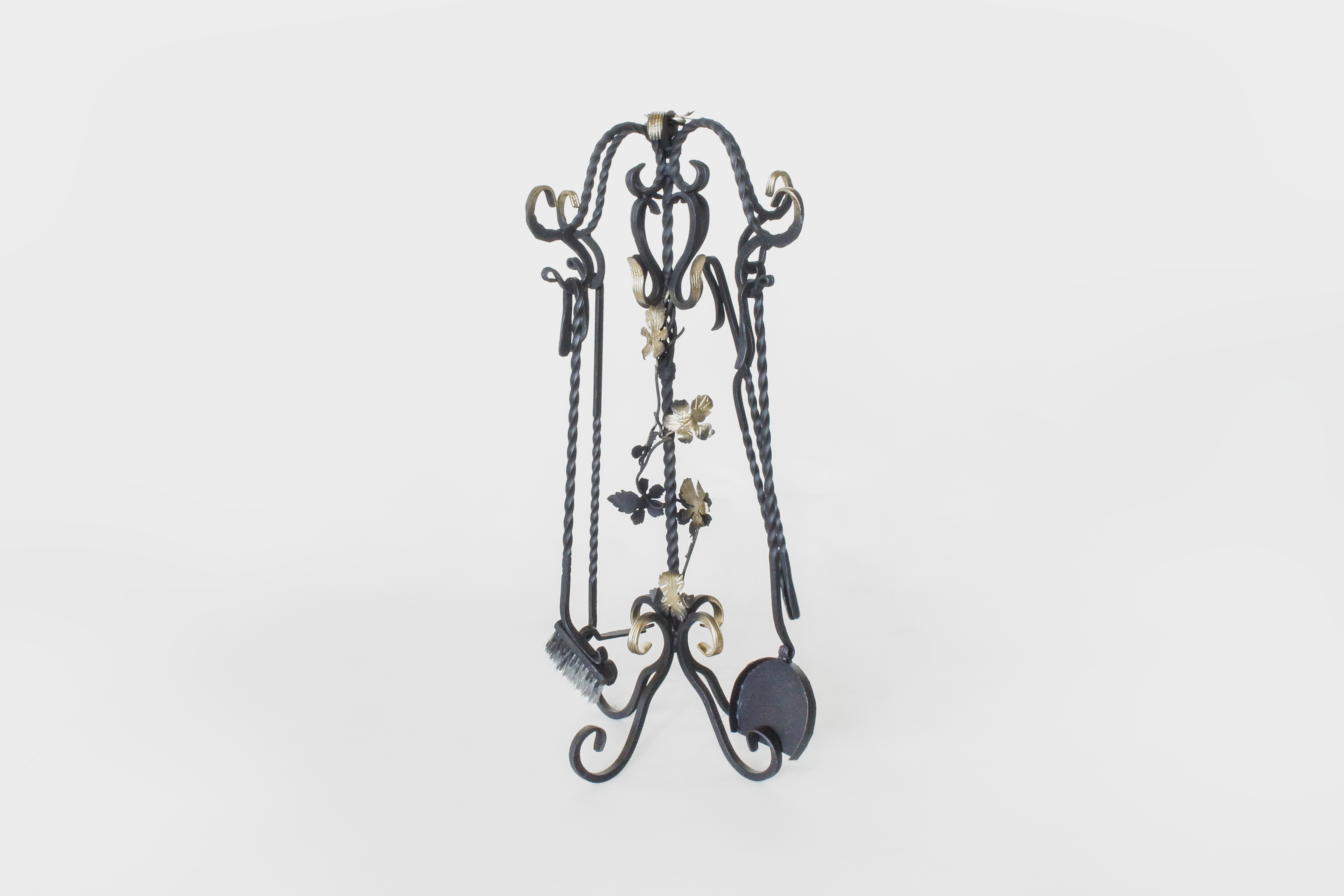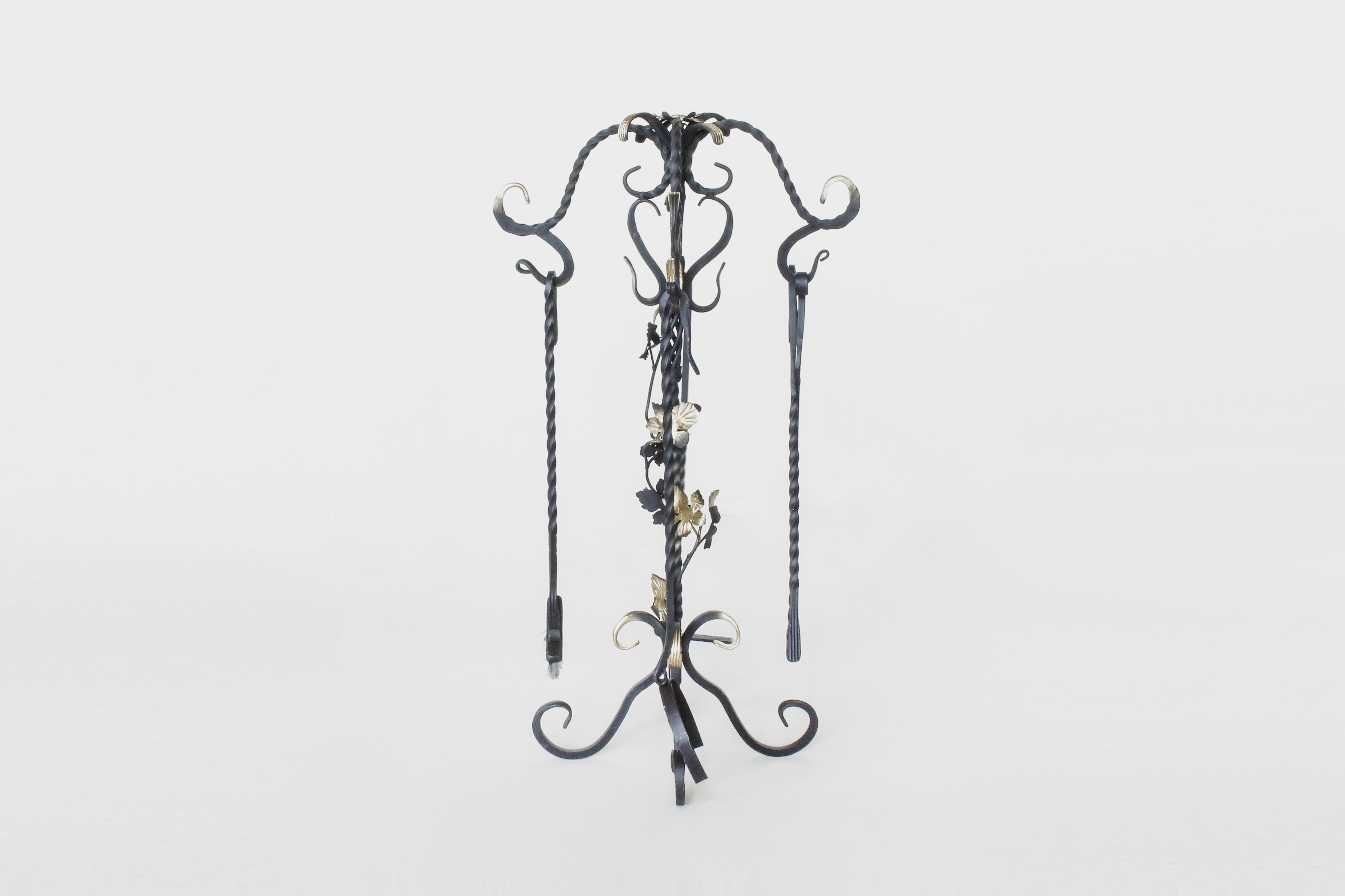 В комплекте кочерга, совок и веер для раздува огня.