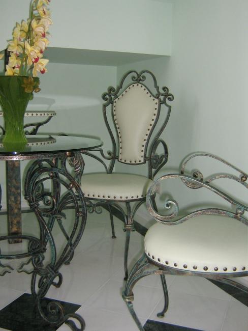 Цвет, размеры и вид обивки зависят от желания заказчика. Также есть возможность изготовления кованой мебели по индивидуальным эскизам на заказ.