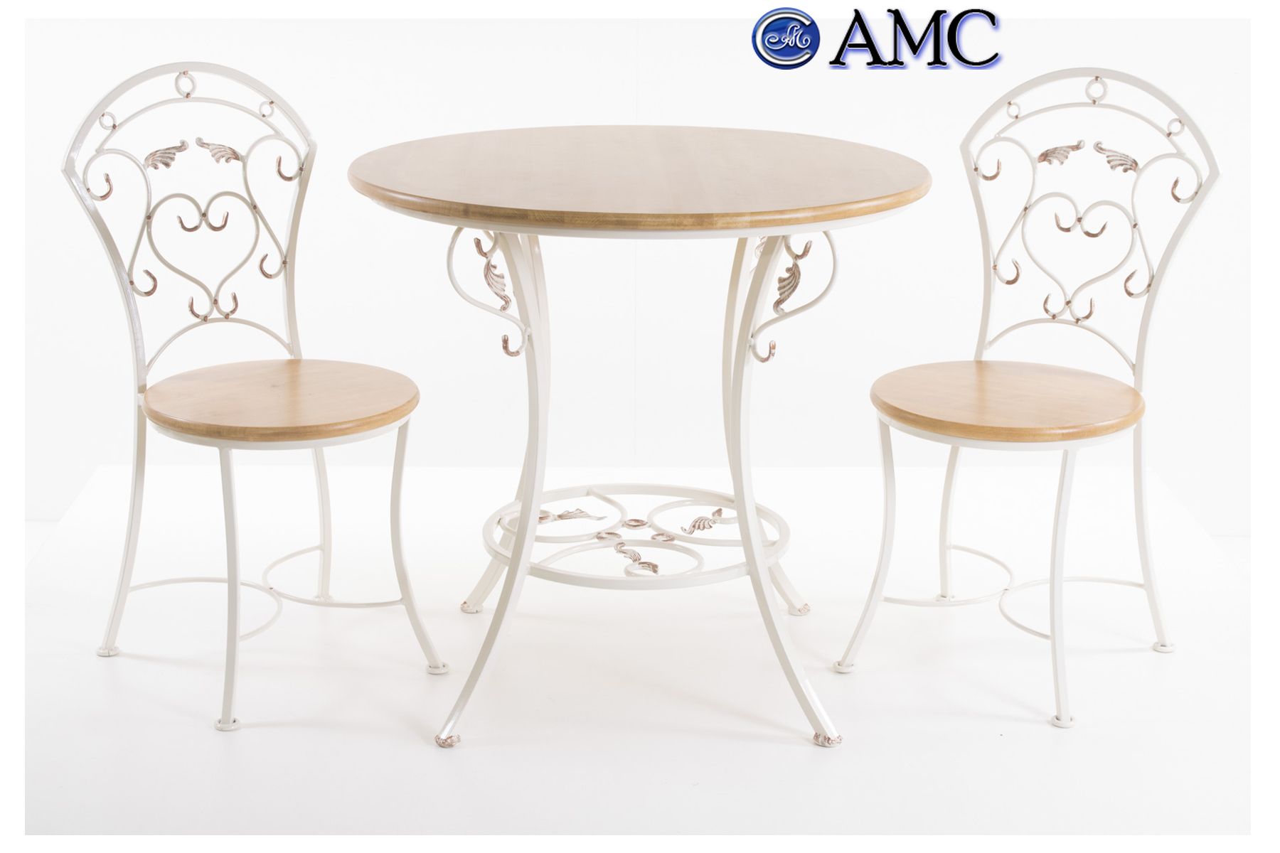 Комплект состоит из стола и 2 стульев. Каркас: металл. Материал сиденья: дерево (ольха).
