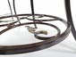 Стол представляет собой изящное сочетание железа и дерева. Для производства металлического каркаса используется профильная труба и металлический кругляк. Элементы изготавливаются методом горячей ковки и гнутья, после чего конструкция сваривается. Большое внимание уделяется окончательной зачистке изделий от сварных швов и окалин.